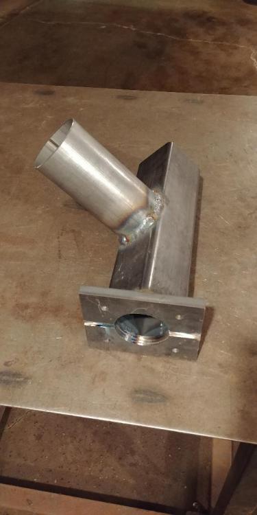 Wow this project got put on the side burner while building a house and now getting back to it. Hopefully I have it up and running shortly and not another year and a half break. Got the basic shape of the forge stand built and bolted the tuyere on. I need to finish the clinker breaker which will be attached to a rod that goes thru the channel I ground out in the tuyere's top lip.
