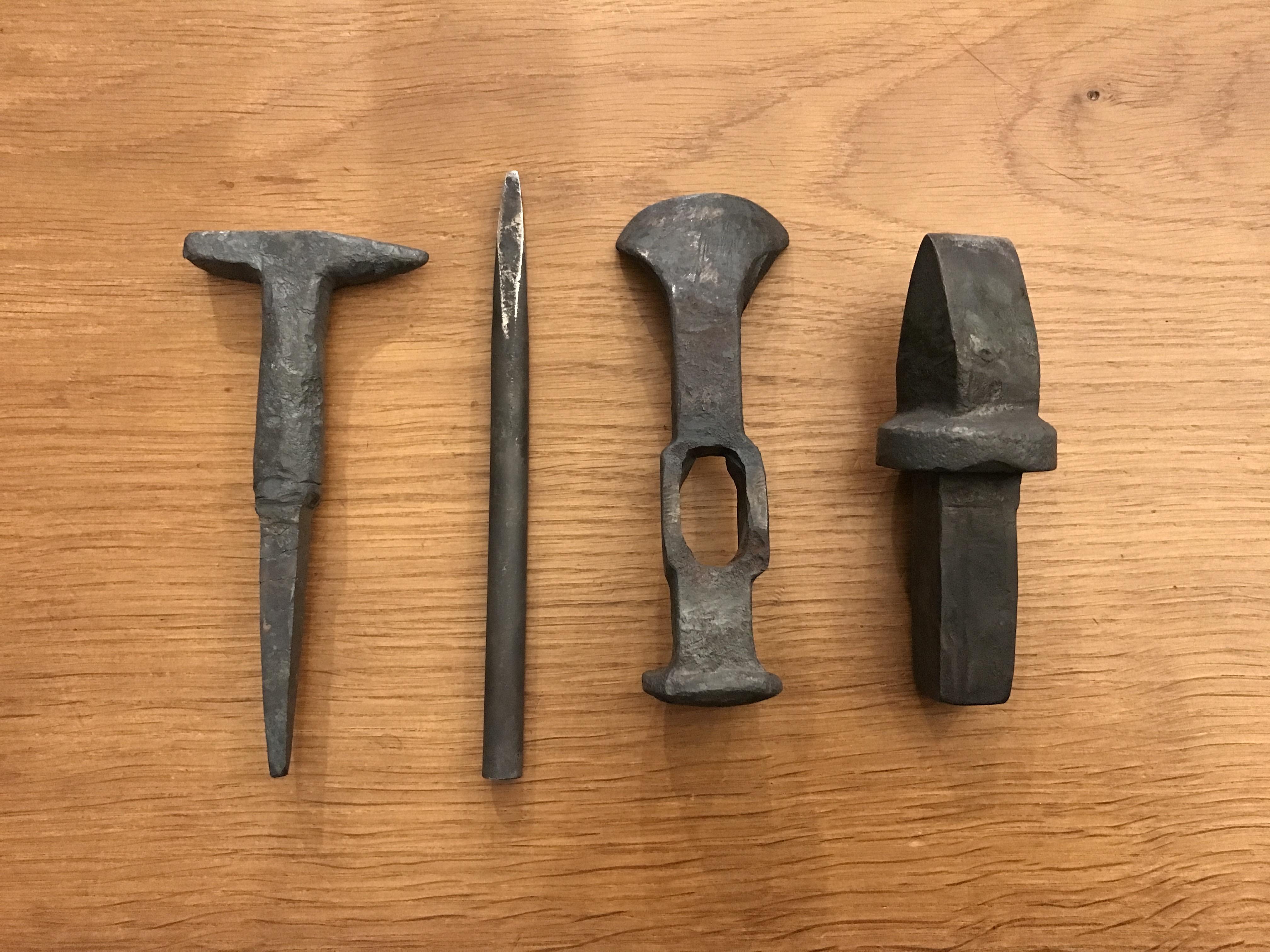 Can we get a good broadside view of the PW, Chad? Today I got home and decided to work on a bunch of miscellaneous projects to finish all of them. All but the stake anvil are heat treated. The stake anvil is made of a rr connector bolt. I tried water, oil, and air hardening, but cannot find out how to harden it! If y’all have any experience, I would love to hear! The punch and hot cut were oil hardened, and the rr spike bowl adze in water. And yes, I know the hardy is twisted, it was my mistake, but the angle actually works better for me! -