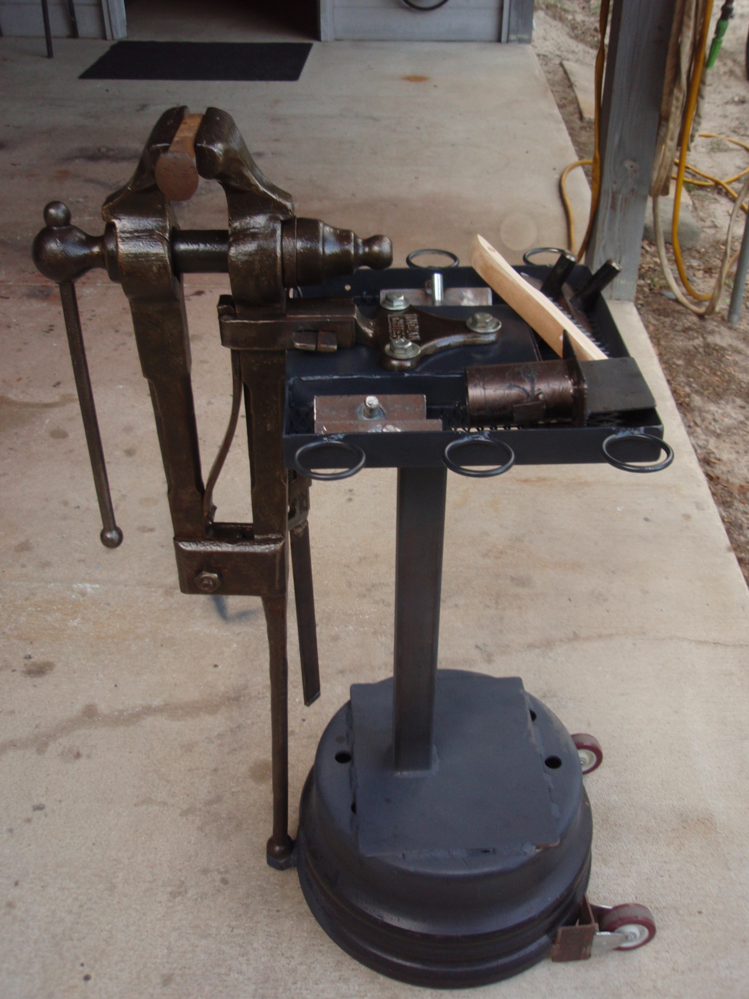 Thats Hot... Posted December 25, 2016 Author Posted December 25, 2016 1 hour ago, BIGGUNDOCTOR said: Probably just decades of old dried grease hanging it up. Unscrew the screw fully to clean, and clean the threads inside the screwbox as well. As to the base, brake drum bodies are cast iron so getting welds to hold is difficult. They may look good, but they tend to crack easily. I have 6 tools on these drums, And yes they like to crack. On this I turned up the to heat to 1/2 and let her rip... so far no pinging... The first one I did was for a bench vise using a Hobart 140 welder.... I think I can still hear. the pinging now. I need to fab up a tray soon In 2017 I am going to put a lot of time in to learning this art of Black Smithing . Quote