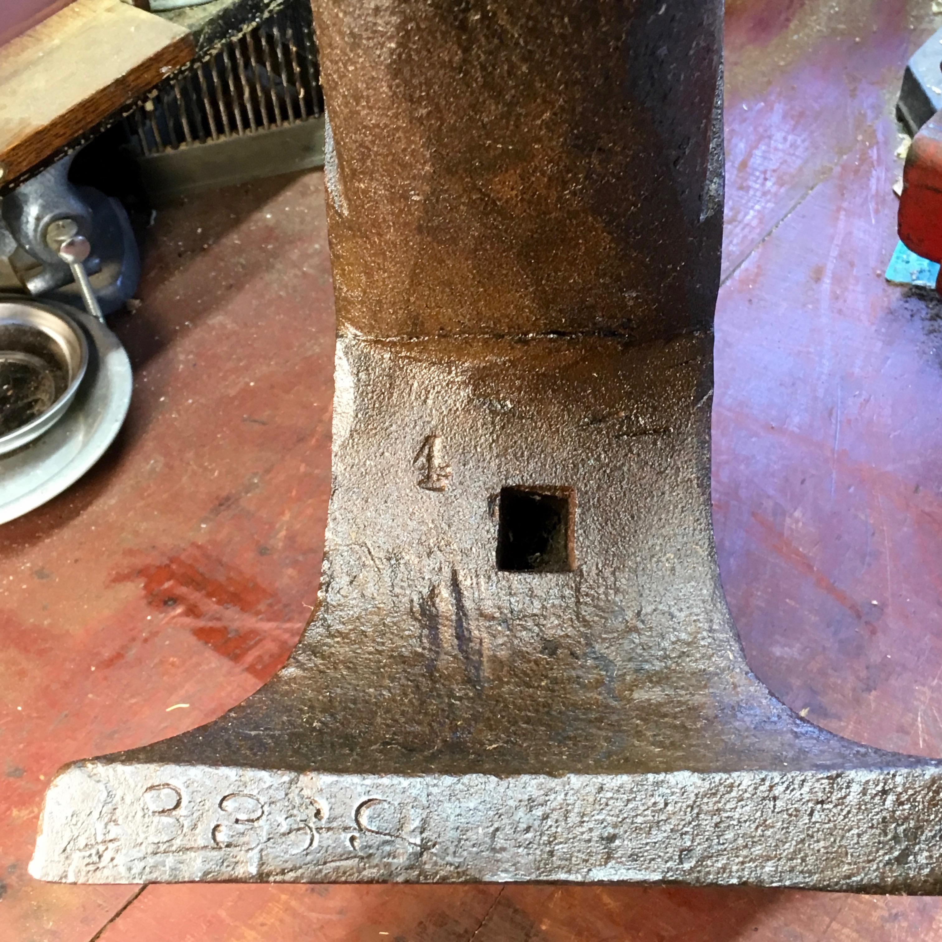 Rollie Posted January 15, 2019 Posted January 15, 2019 Hello, I have a question about an anvil that has been in our family for years. My great, great grandfather was a blacksmith who was born in Ireland and came to the United states during the potato famine. His son was also a blacksmith, and of his two sons one was my grandfather, a farmer and carpenter, and his brother who was a blacksmith until he was kicked by a horse and died in 1941. My father and I were both tool makers, and I am pretty sure the anvil was at least my grand uncle's. It weighs 125.5#, and the pictures tell the rest. My question is about the base, as it looks like the anvil was hollow cast and filled. Was this the way they were made? Also since stamping numbers and letters doesn't seem to be a refined art back then, :-), I wonder about the serial #. It appears to be 8369, but that seems too low. If there was a "1" there, it would make it about 1895 from other members posts. If there was a "4" there, it would seem too young, and there is a "4" stamped under the horn above the serial # that doesn't match the same style, but the upper "4" could be an inspectors mark from different stamps. Anyway, I lightly wire brushed it, and coated it with linseed oil. It will stay in the family, but I sure would appreciate any comment any one has, as I have no experience in the art. Quote