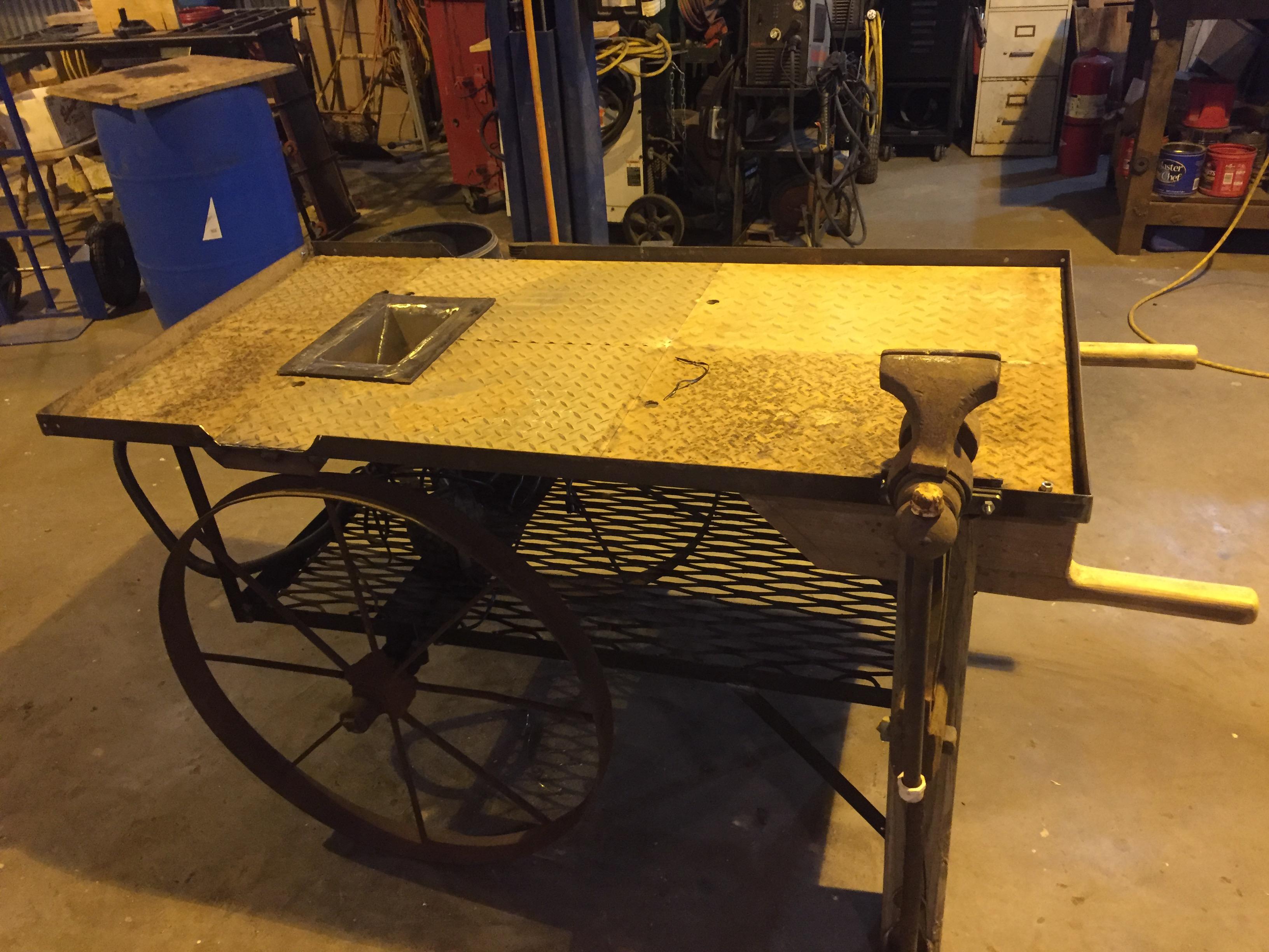 Charles R. Stevens Posted March 20, 2019 Posted March 20, 2019 Your set up might not be ideal for anything other than a small machinists vice, but on forges with big tables postvices mounted to one end works great. With your 4 wheel set up and small table it will be aufly close to your fire and you will have to place a block under the vice. Now the last cavalry forge issued buy the US army acualy had a small machinests vise that sat on one corner and a small anvil on the other. Quote