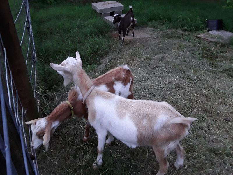 olfart Posted June 23, 2019 Posted June 23, 2019 A friend gave us a Nubian mother and kid many years ago. They used to delight in jumping on the car. I asked the friend how to stop that, and he replied, "Don't park in the goat pen, dummy!" So that's when I built a pen. We're starting on our third herd now after selling our second Nubian herd last September. This time around we're going with Nigerian Dwarf to save a little on the feed bills. This is BillyBob, the new buck (8 weeks old). And Boots and Brandy (3 and 2 years old) Finally, the twin does we picked up yesterday, Snow White and Cinderella (6 weeks old) Quote