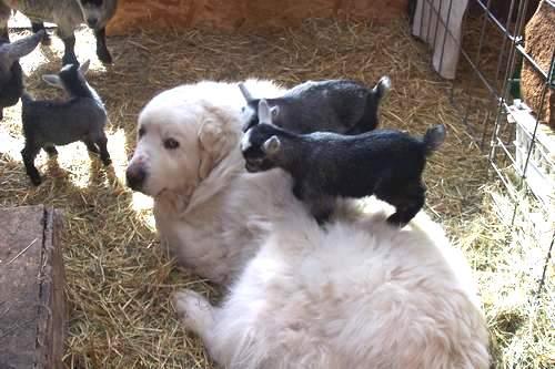 Frosty Posted June 21, 2019 Posted June 21, 2019 MIGHT be fun? You ain't lived till goat kids discover you're fun to be around. I couldn't find the pics of kids curled up sleeping on Buran but I have one of them using him for a trampoline. The game was to jump from his back onto the box on the left, then down around and back on his back. Great fun. He was their bed most of the time, especially if something scary happened. On cold nights in winter the entire herd would pile on him for warmth. Speaking of curling up for a nap. the next down on the left is one of the kids snuggling in for a nap with Bella, a rescue we rehomed to a sheep farm. The one to the right is Libby and a really new kid. Libby just stood there till the kid was sure it was okay and approached. The last pic is Libby and the bucks when she was a new rescue. The boys LOVED Libby and being a typical Pyr she loved them as soon as she saw them. The boys typically ran 10-15 lbs. more than the does. Frosty The Lucky. Quote